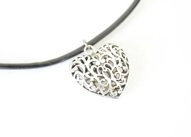 Abrir un anillo de salto de 8 m m, sostiene un lado con unos alicates y girando el otro lado hacia ti. Coloque el colgante dentro del ring y cierre girando el anillo del salto contra ti y alineación con el otro lado. (Yo usé un mayor salto anillo aquí como colgante era más grande en tamaño. El anillo del salto 6 mm no fue suficiente para sostener el colgante cuando se encadenan en el cordón de cuero. Por lo tanto, puede utilizar el mismo tamaño del anillo del salto o un tamaño diferente según su preferencia.) Ahora, cable de cadena el colgante al cuero 16".