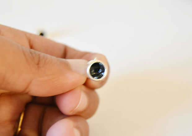 Retire la cinta de un lado. Tomar la tapa y rellene con pegamento E 6000 e inserte el cuero cables dentro y deje secar. Repetir lo mismo para el otro lado.