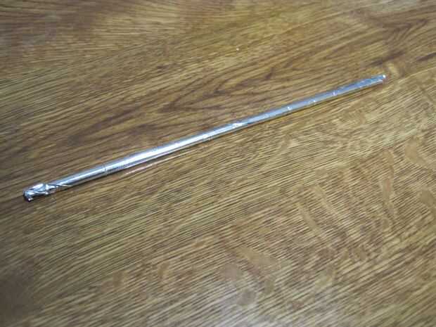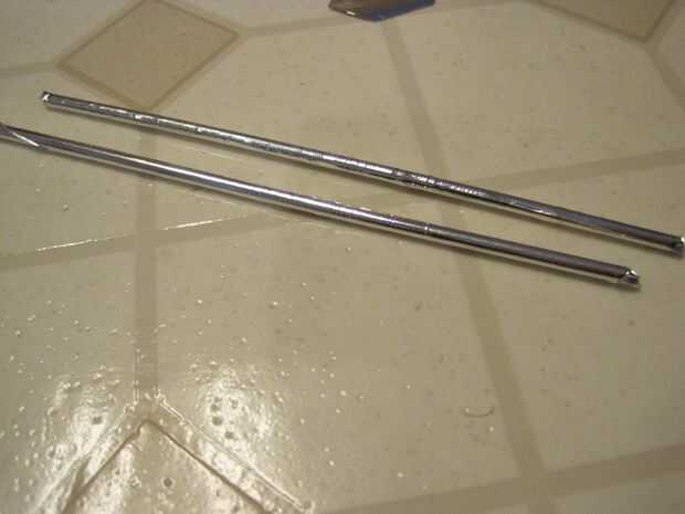 Medida de un poco más de 7 pulgadas de cinta. Cortar la cinta por la mitad, para que tengas 2 tiras finas y largas. Envuelva 1 mitad alrededor de cada espiga.