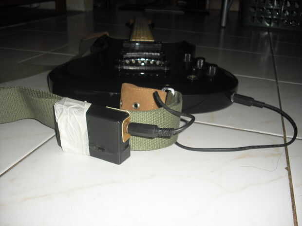 un viejo micrófono inalámbrico para sistema de guitarra inalámbrica.