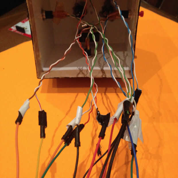 Esto es cuando se llega a poner los botones en los cuadros! Este paso requiere un poco de paciencia, como va roscado un montón de cables a través de orificios diferentes, y lo puede conseguir un poco sucio y enredado! (NOTA: ETIQUETA TUS CONEXIONES EN TU CINTA BLANCA PARA HACER LAS COSAS MÁS FÁCIL)