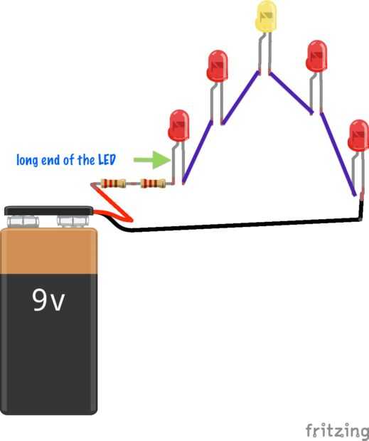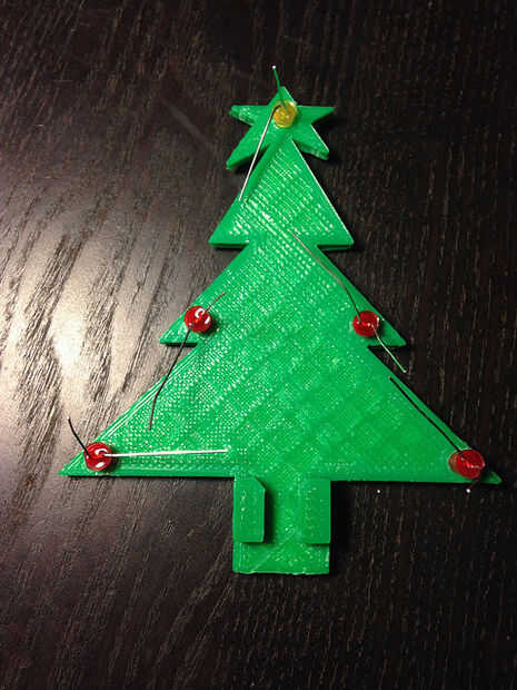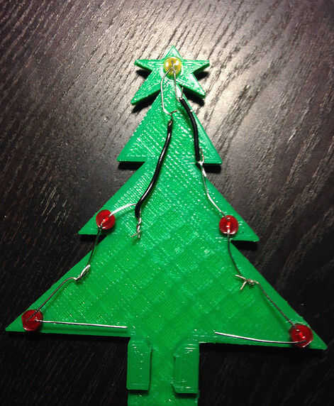 Presione el LED en la parte de árbol estampada 3D y seguir el esquema adjuntado.