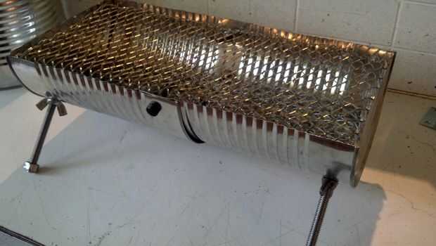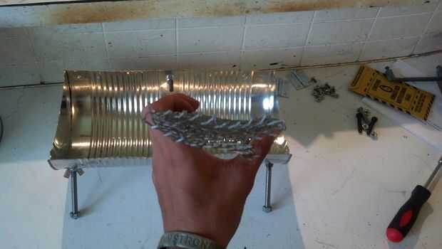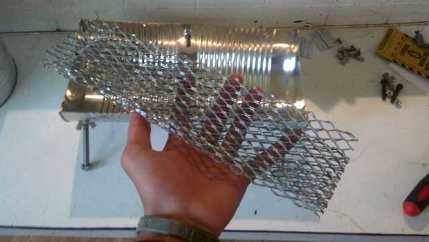 Encontré algunas mallas gruesas y dobladas en una pieza que es tres capas de grosor, 3-1/2" ancho y tan largo como la base. Yo también doblado alguno en una parrilla para cocinar.