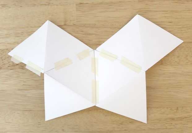 Después se cortaron todas las formas, comencé a todos juntos la cinta. Con cinta de enmascarar y evitar el uso de cinta scotch como el último no funciona bien con cola blanca (que vamos a trabajar con en el siguiente paso)