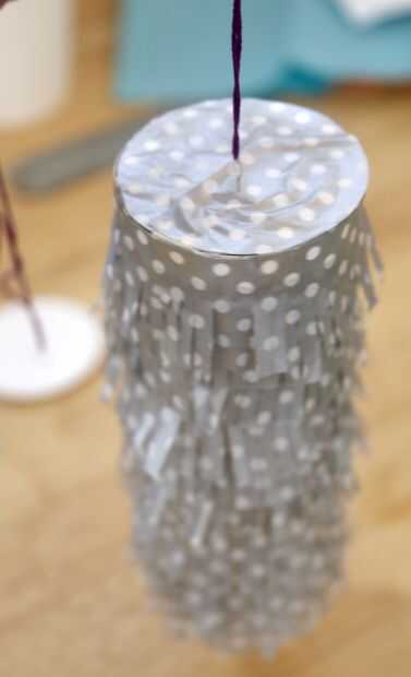 He hecho un pequeño agujero en el centro de un círculo y alimentados con una longitud de cadena a través de él entonces agregó en un montón de aléjalos dentro. Grabado todo y pegadas al margen. Para los extremos del círculo, corte la forma en papel de seda y pegué justo en la parte superior. Usted puede de la franja este, si quieres.