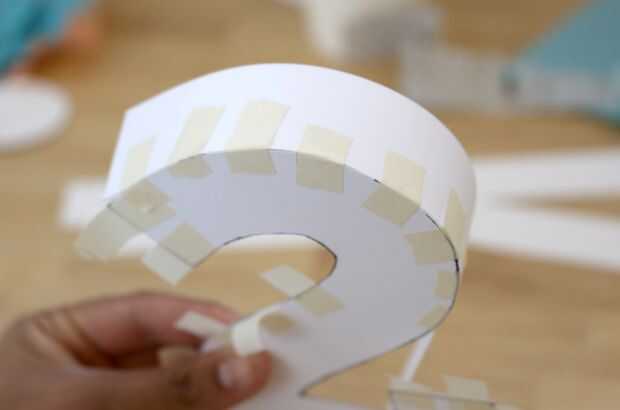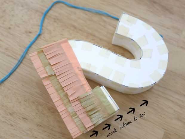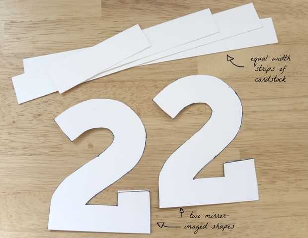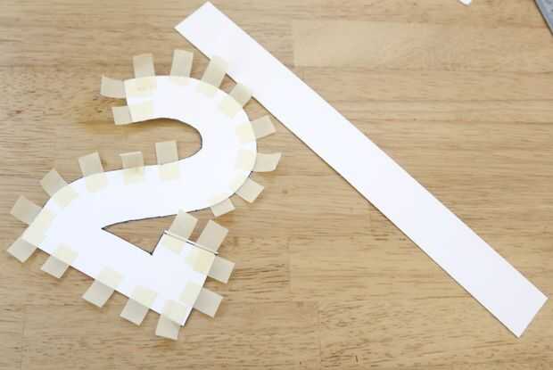 Yo quería hacer una forma de número, que en realidad no probó ser difícil en absoluto. Comencé cortando dos formas idénticas de cartón. A continuación, pensé acerca de cómo grueso quería la piñata y cortar tiras de este ancho en tiras de la cartulina.