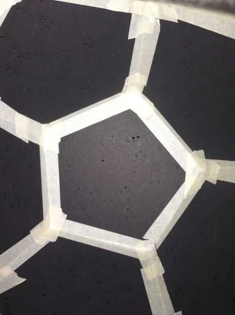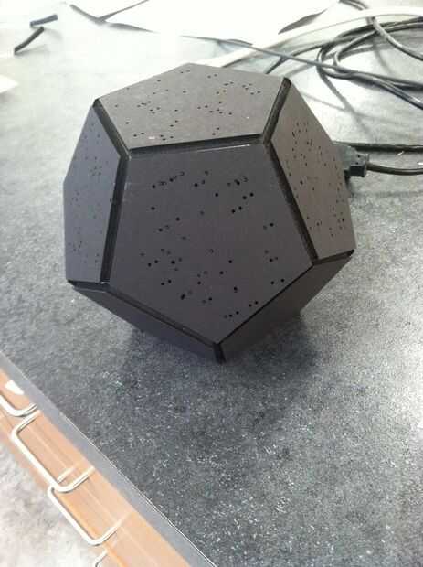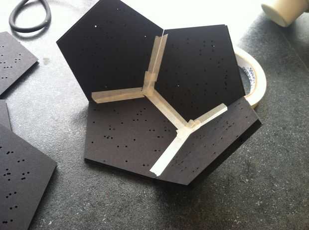 Después las piezas son corte hacia fuera, tienes que pegarlas en forma de dodecaedro que queremos tener al final.