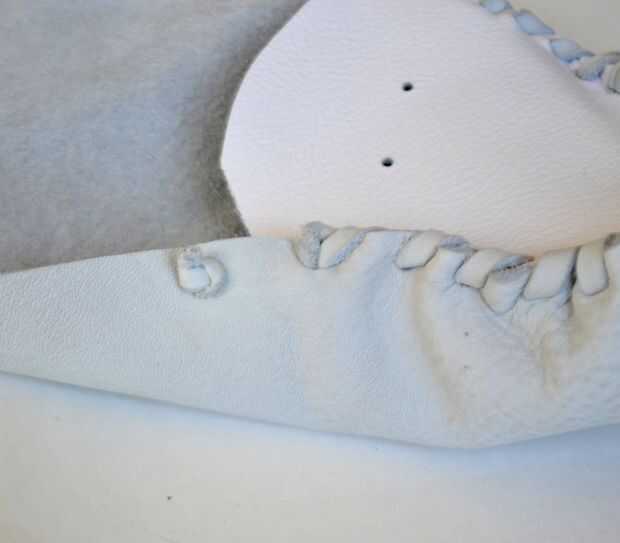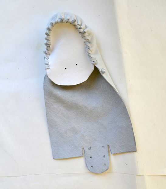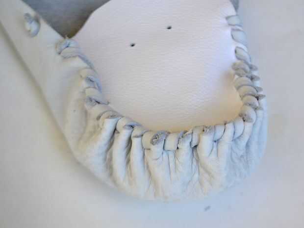 Coser la forma de cuero más pequeño al más grande con la cadena de cuero, como en la foto.