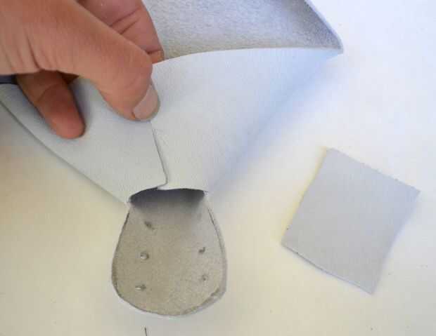 Unte pegamento cuero todo la parte de atrás de él, Únete A con A y pegar el cuadrado pequeño de cuero en el interior de los zapatos.