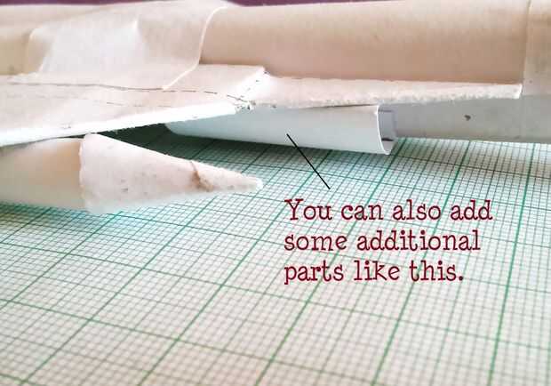 ¿Pero espera, encontrado su papel demasiado fino para mantener unida a toda la estructura? Si es así, tome algunas cartas o un cartón grueso alternativo, cortar según las alas de su modelo y otras estructuras y pegarlo detrás de la estructura de papel para dar un apoyo adicional a su modelo.