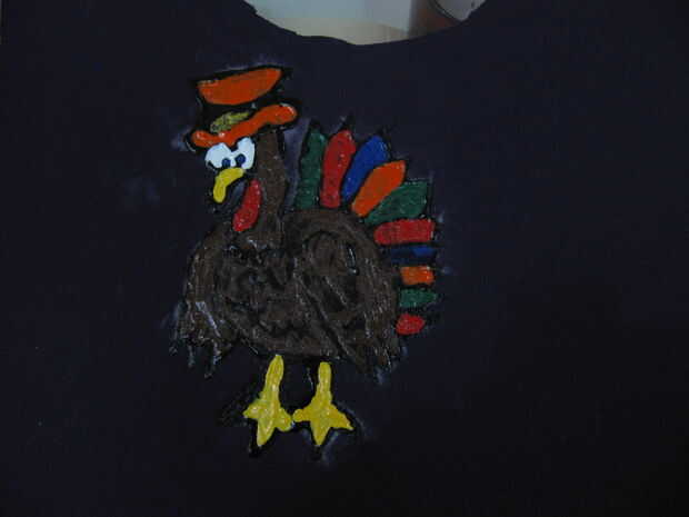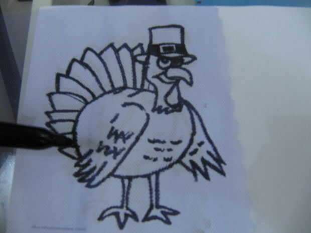 Luego pinta sobre las líneas de tiza con pintura de tela negra. Dejar secar al menos 4 horas. Luego vuelve y el resto de los colores en la pintura. Dejar secar al menos 4 horas, durante la noche es mejor.