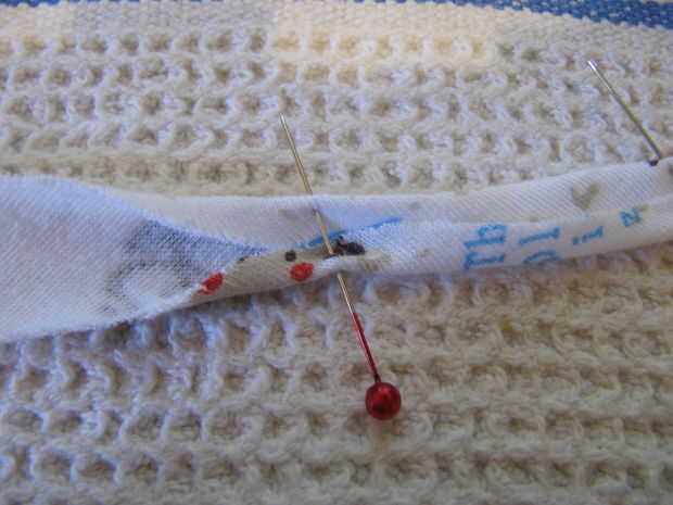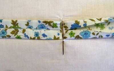 Doblar y planchar las tiras, si no tienes la herramienta poco ingeniosa. Coloque una aguja larga en la tabla de planchado que perfora a la tela en dos lugares. El espacio en el medio será el ancho de la cinta bies. Doble a su tela y tire de él debajo de la aguja y debajo de la plancha. Pulsando continuamente la tela como usted tire a través.