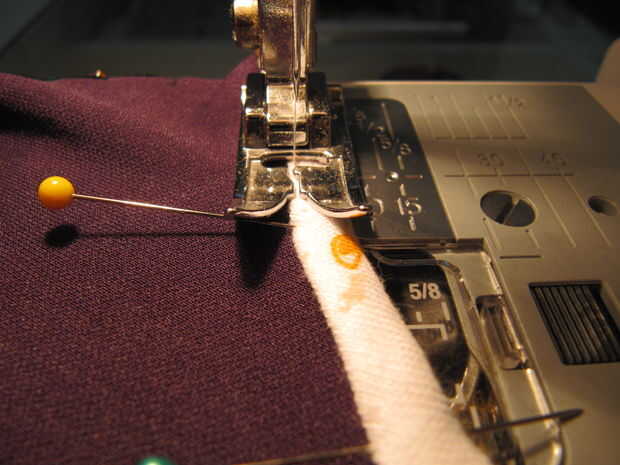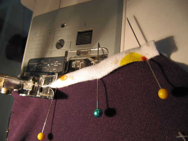 Cosí mi sesgo en antes de coser que cualquier otras costuras y me gusta los bordes para ser encajonados.