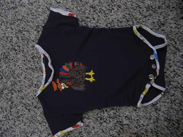 Añadir broches de presión, ya sea estilo dientes puntiagudos o cosido a las aletas de la parte inferior y listo! Completamente uno de un bueno equipo de acción de gracias!