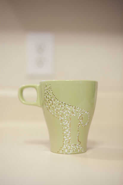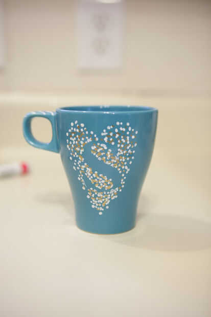 Materiales necesarios:Tazastickers de Scrapbook o cintaplumas de sharpie (sharpies normales se lavan en el lavavajillas y en el tiempo) a base de aceitePaso 1: Poner las pegatinas o cinta Colocar calcomanías scrapbook o cinta donde querían en la taza