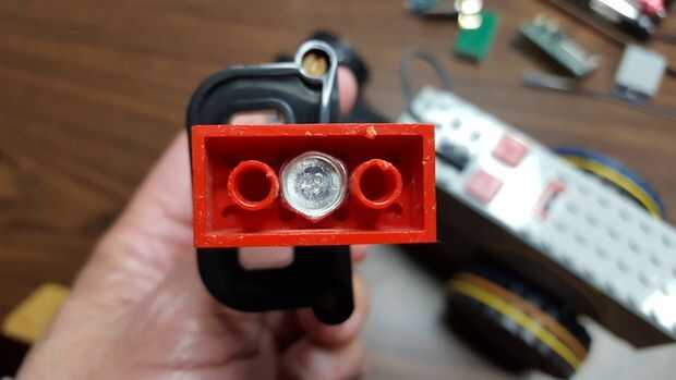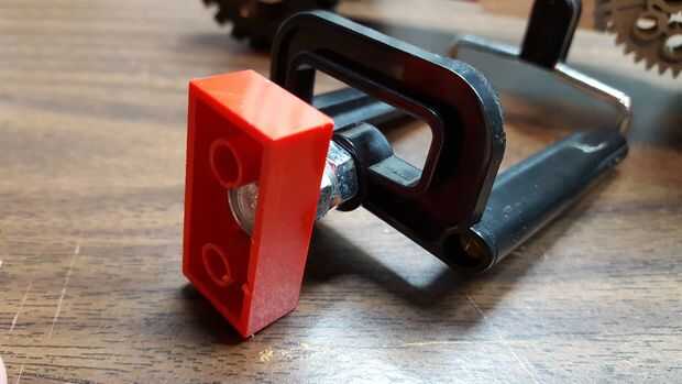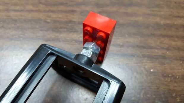 Utilice dos tuercas, una para fijar el perno al ladrillo LEGO. La otra para empujar contra el soporte de la cámara.