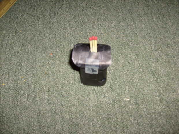 El delantero a su anillo del clip de papel con la huelga en partes hacia la cinta. A continuación, superglue los tres partidos juntos el pegamento a la parte interior del cilindro. Deslice los huelguistas en los partidos y goma la venda firmemente cerca de la parte inferior de los huelguistas. La banda de goma empuja a los huelguistas en los partidos, creando la fricción para causar la reacción.