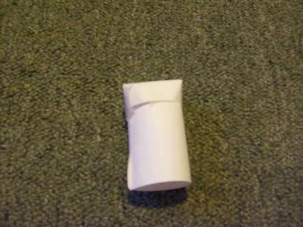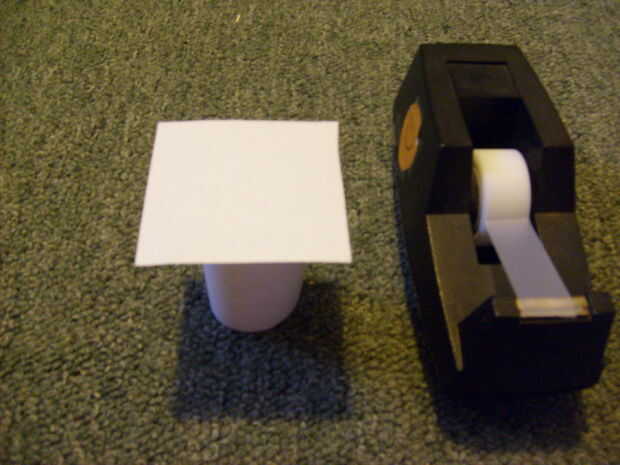 Ahora Coloque una de las plazas en uno de los lados abiertos de la botella de la tarjeta de índice y los cuatro lados de la cinta hacia abajo. A continuación, la cinta los bordes de la plaza en el cilindro.