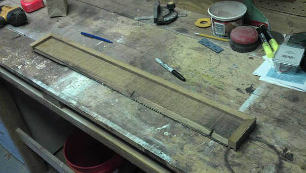 Inglete las esquinas y luego madera pegamento y brad a su Junta Directiva. No utilice uno en la parte inferior debido a la fractura. Ha fina - otra vez, más carácter.