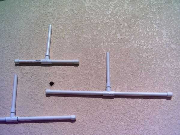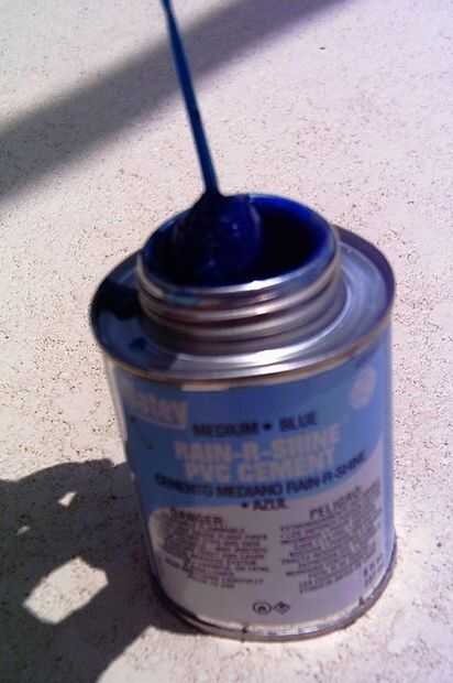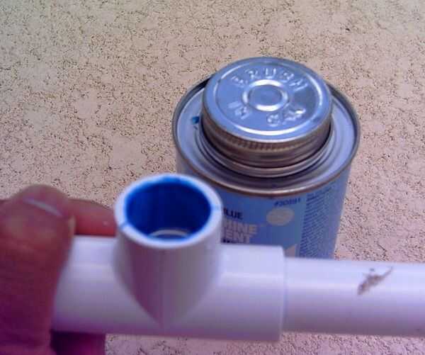 Poner la máscara de nuevo y aplicar el cemento de tuberías de PVC para el anillo interior de la t y conectar el el tubo de PVC. No pierda el tiempo porque el cemento comienza a secarse rápidamente y el tubo puede ser difícil de colocar. Por supuesto, no pegue los extremos roscados.
