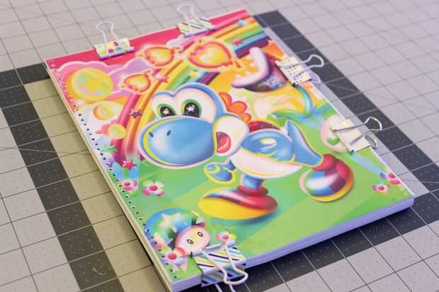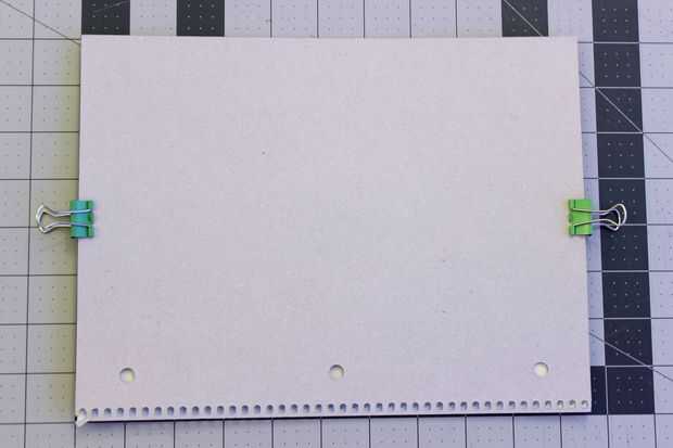 Siguiente para agregar los agujeros para la espiral. Utilice clips binder para fijar la cubierta original a su nueva cubierta. La primera vez que hice esto me marca los agujeros con un lápiz luego perforados los orificios, pero es otra forma (más rápida) perforar los agujeros originales mientras tienes la carpeta dos tapas recortada, esto también mantiene los orificios alineados un poco más recto y puede saltar marcando con un lápiz.