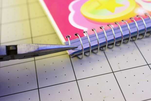 La cosa pasada a hacer es quitar los clips binder y doblar los extremos de la espiral en ángulo de 90 grados con sus pinzas. Esto evitará que la espiral de resbalamiento. Ver las fotos de una visual:)