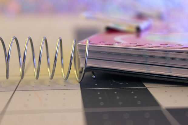 Una vez que todos los componentes estén en su lugar puede empezar a torcer la espiral vuelva a través de los agujeros. Esto fue juntos muy bien, mejor de lo que esperaba! Mientras sus páginas me alojé en el lugar debe ser muy fácil. Recomiendo revisar la parte posterior de su portátil de vez en cuando para asegurarse de que su captura todas las páginas. Continúe girando hasta que la espiral en lugar!