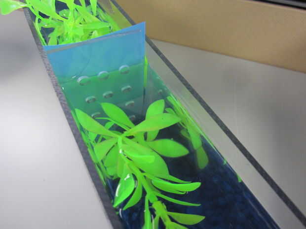 Voy con plantas de neón verde, una cabeza de isla de Pascua y grava azul. Mi compañero de trabajo fue con la menor ruta "HEY allí es una pecera aquí!" y tiene plantas de color más oscuro. Usted se sorprenderá de cómo muchas personas Pase todos los días y no notarlo, incluso con las plantas de neón.