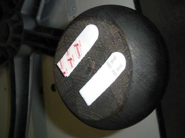 He quitado el papel de soporte en una tira y presionar a la parte inferior de un moño. Luego apreto a su "compañero" sobre ella con el papel del forro sigue intacta. Esto asegura que los dos se estén alineados perfecto al instalar los reguladores. Usé dos trozos de 3M por bollo.