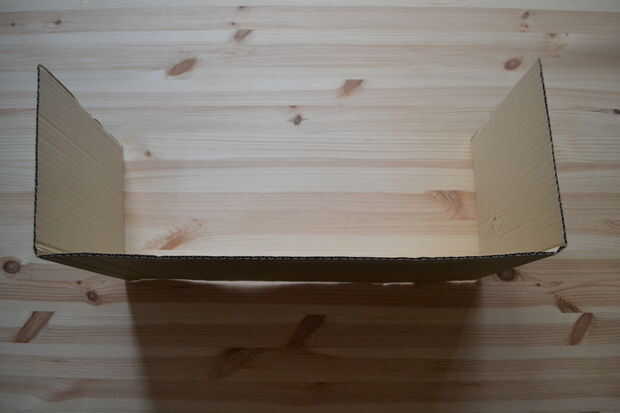 Para la pieza superior, doblar los extremos 10 de los extremos, como la pieza del fondo y entonces por un lado, doblar la cartulina, 10 de las anteriores (ver diagrama más abajo) de la curva. Opté por dejar el cartón como es pero también podría cubrirla con papel de contacto para un aspecto más acabado.