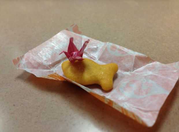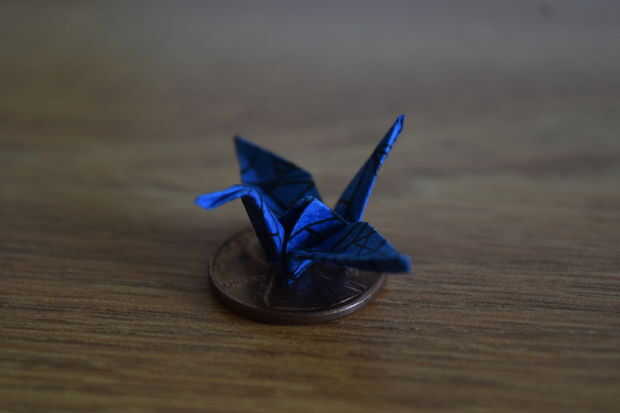 En la fotografía superior (y en mi instructable origami así) es la grúa más pequeña yo tengo pruebas de la foto de mi plegable. Está sentado encima de un pececito para la escala y era del tamaño de aproximadamente una octava parte de un contenedor de starburst. Las grúas que usé para estos pendientes eran de papel de 1,5 "x 1,5", y era de un tamaño perfecto para esto.