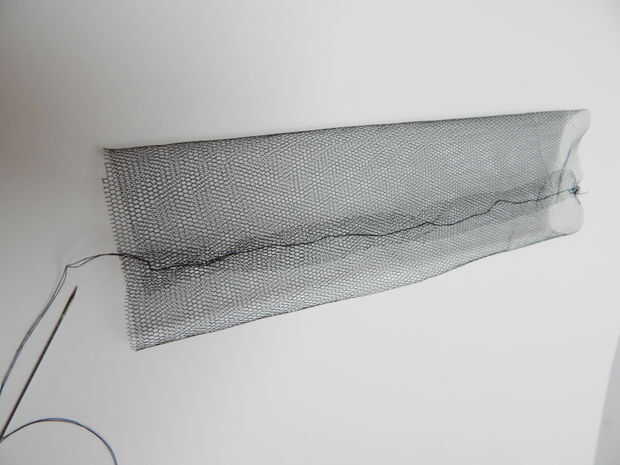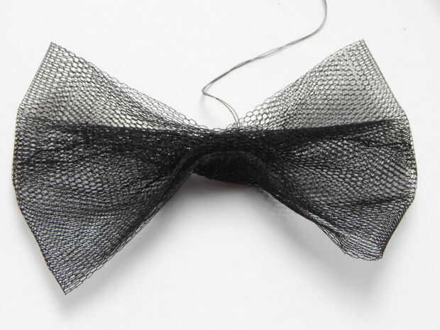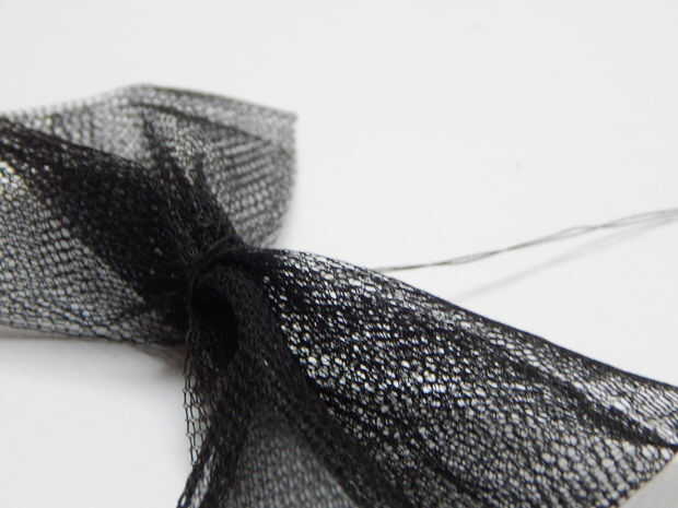 Desde el tul se corta aproximadamente rectangular de diseño 25 * 19 cm. Pila encima de las fronteras más largas 2 y coser el final. Luego en la mitad tolerar el tul y coser juntos. En la mitad arruga el tul y cose juntos.