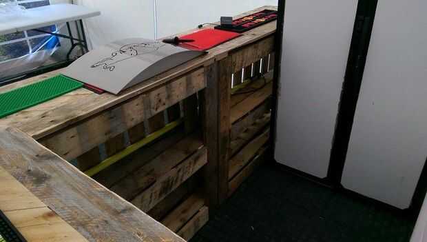 Esto es, literalmente, tres plataformas de pie de tamaño igual al lado del otro y atornilladas. la configuración depende de usted y dependiendo de su lugar se podría hacer una 'L' o una forma de 'C'.