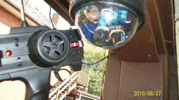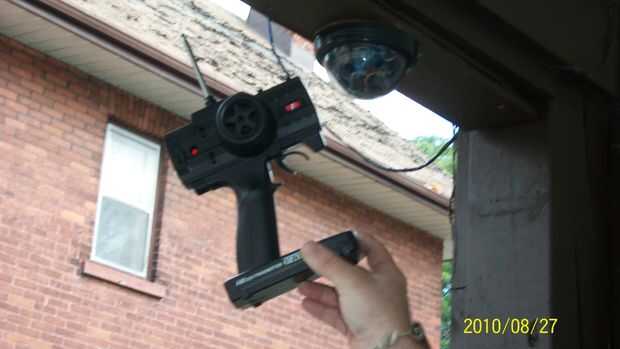 de todos modos... Ordené un RC transmisor y receptor de ebay ($35,00) pero es una futaba que es la mejor marca y un pack 16 de micro servo a un precio imbatible $22,00 w S & H. La cámara es también una cámara de niñera inalámbrica que tuve de ebay esperando un proyecto como este por un tiempo por lo que la leva y el receptor fue envío también gratis $28,00. La última parte era una cúpula de cámara de seguridad señuelo que compré por $1.00 en el almacén del dólar para encajonar todo en. Todas las piezas son muy pequeñas para mantener el sistema lo menos poco notable como sea posible. Ahora os enseñaré lo que hice!