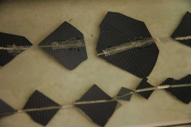 Me pareció que la mejor manera de conectar entre dos células con pegamento caliente y un cierto acoplamiento conductivo. La malla es buena ya que permite la luz a través y pistolas de cola de amor todos. Todo lo que necesita hacer es pegamento de la malla sobre la superficie de la célula solar. Siempre es mejor tener una tira más larga de malla en la superficie, con un bastante grande compartió espacio superficial entre los dos. Siempre verifique con un multímetro que hay conectividad y que hay voltaje a través. Su un charlatán más adelante para tratar de averiguar dónde está el problema.