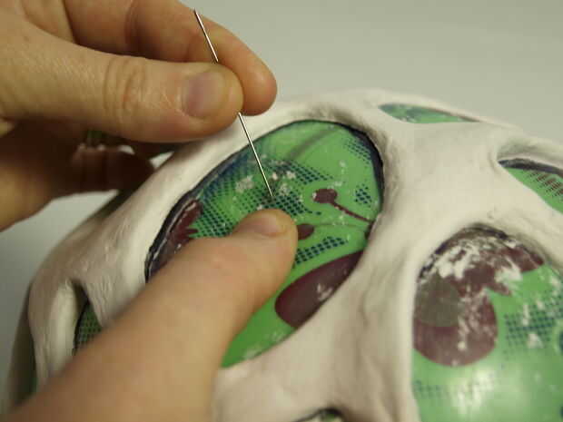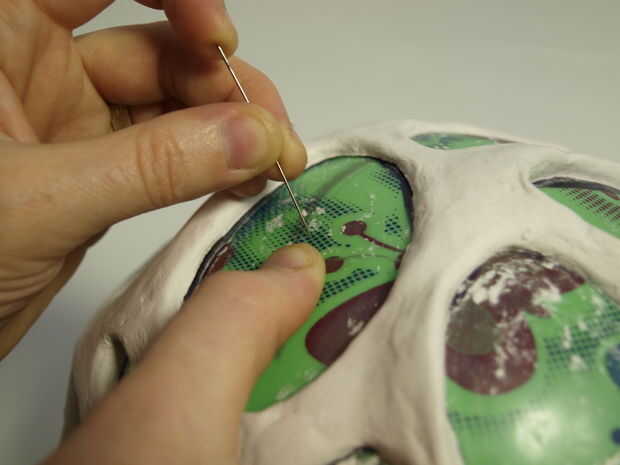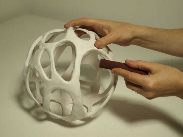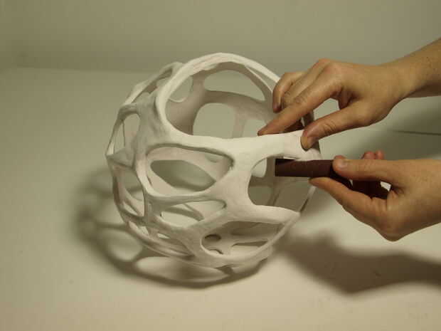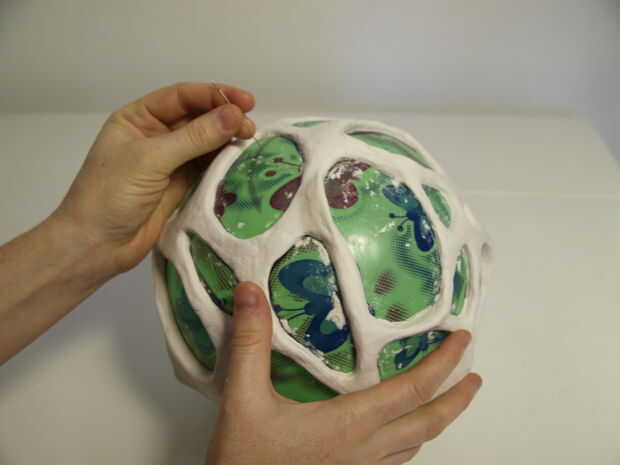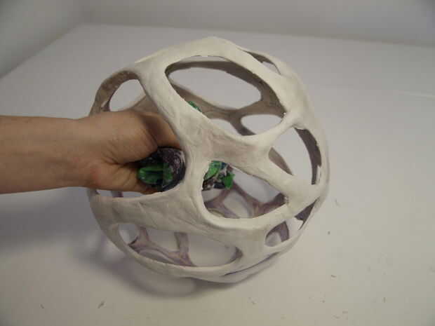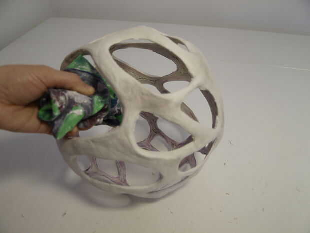 Cuando todo se seca, utilice una aguja para hacer un pequeño agujero en la bola. Deje que el aire escape y luego reducir la bola hasta que usted puede sacar. La forma de la arena y si sientes que es necesario agregue más arcilla.