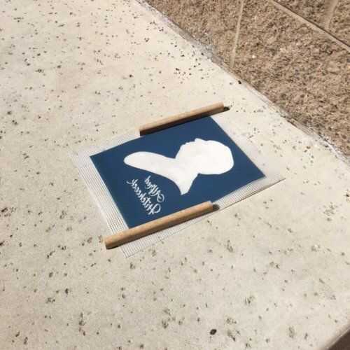 Después de que la plantilla era enjuagarse y secarse con toallas de papel, puso atrás fuera para curar la emulsión. Este paso solidifica la emulsión en la pantalla de seda, lo que es permanente. Tarda 5-10 minutos al sol, lado de emulsión hacia arriba hacia el UV del sol.