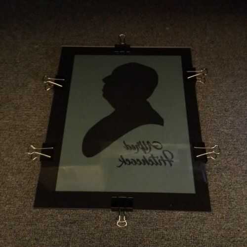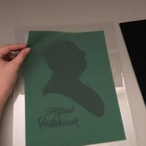 Puso la transparencia en la parte superior la Junta claro, luego añade la plantilla EZScreen (el lado brillante hacia abajo) encima de la transparencia. He añadido el negro sentía Junta y asegurado con todos los clips.