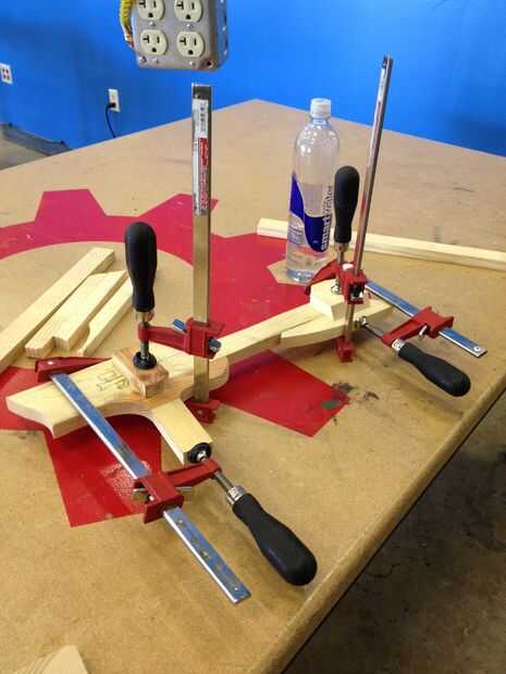 Entonces utilicé pegamento para madera y grapas para unir todas mis piezas de madera juntos. Una vez seco el pegamento, hice alguna luz lijar para hacer todo el sit piezas ras juntos