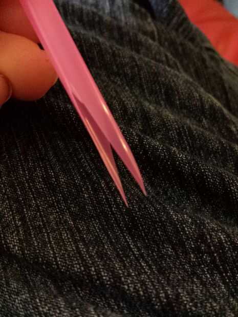 use un par de tijeras (niños-conseguir un adultos ayudar) para recortar el extremo de la pajilla a un punto, que se asemejan a pinzas.