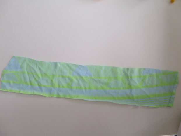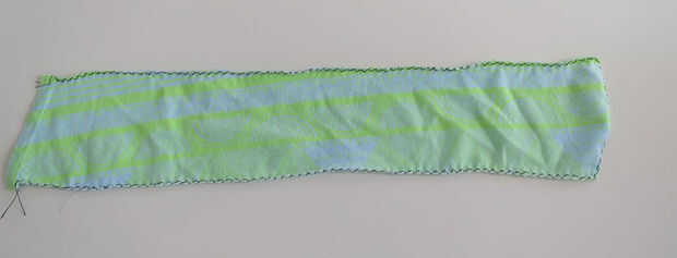 Cortar a la tela en forma de un rectangel. Usted puede cortar cualquier tamaño que quieras pero la mina era 10 cm x 25 cm. cerda todo el borde para no desentrañar.