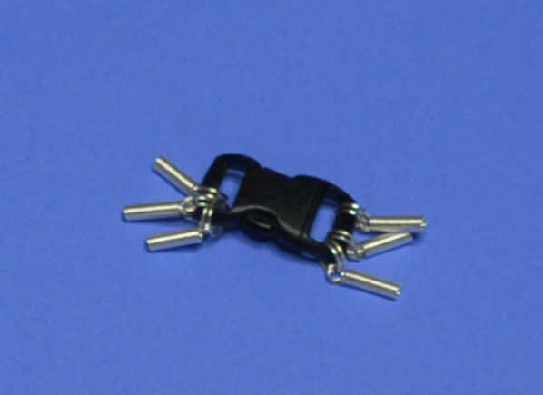 Tome el anillo del salto que el grano de la encrespadura y fíjelo a la hebilla collar. Debe hacer esto 3 veces en cada extremo. Cuando haya completado este paso, debe tener 6 Chafas Unidos a la hebilla collar de perro en total.