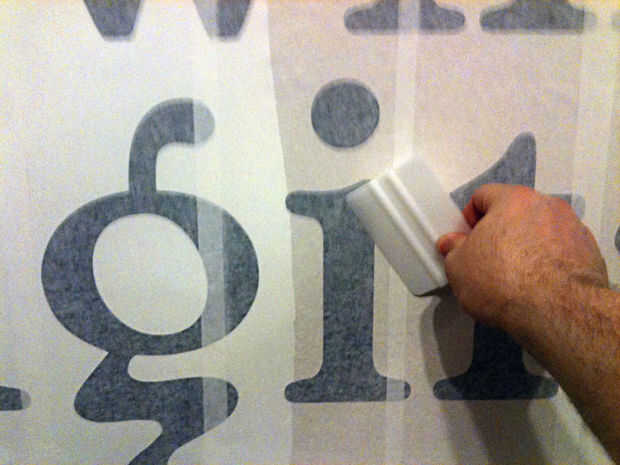 Si observas el vinilo tirando, lentamente empuje hacia atrás y frote hacia abajo otra vez con la escobilla de goma. Si eso no funciona, compruebe que la superficie esté limpia y adhesivo puede pegarse a él. Si eso no funciona entonces eres en tu propia... elegir una nueva ubicación. Probablemente sería mejor intentar un pedazo de vinilo extra en ese lugar antes el esfuerzo. Algunos trabajos de superficies grandes, pero allí están unos cuantos que no hacen bien.