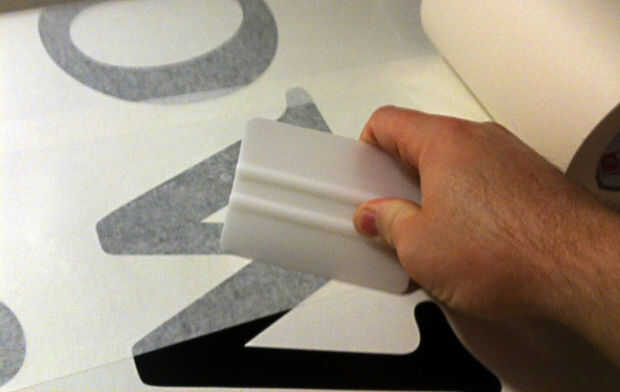 4. después de cada pieza, ir sobre ella con la escobilla de goma para asegurarse que esté perfectamente plana con burbujas no – a partir del centro o de un borde. Ser suave hasta que la tira de cinta se aplana completamente y luego repasar con más presión.