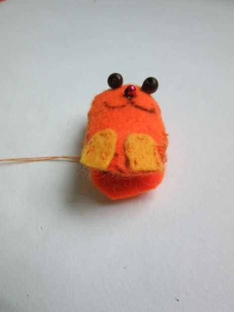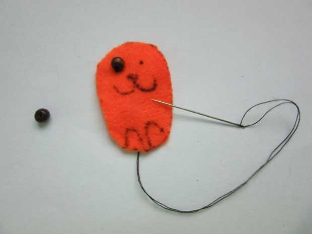 Cortar el fieltro hacia fuera y comience a coser. En esta etapa, debe añadir sus granos de la semilla y las manos y los pies. Después, añadir el algodón y coserlo cerró y por último, coser las orejas y las otras partes sueltas, como la cola.