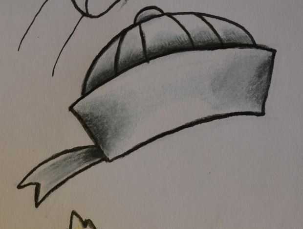 Sombrero de marinero: es muy fácil de dibujar y colorearlo con dos cortina de azul y negro sombreado (mirar la foto).