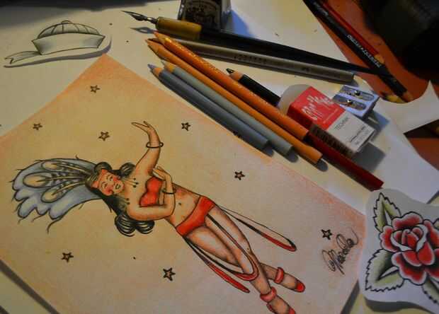 ⚓ DIY PIN UP chica tatuaje dibujar ⚓ (13 / 13 paso)