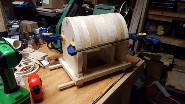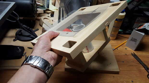 La madera era la estantería de pino más barata que pude encontrar en la ferretería local. Las piezas son solo pegadas y luego atornilladas junto con tirante muy fino.