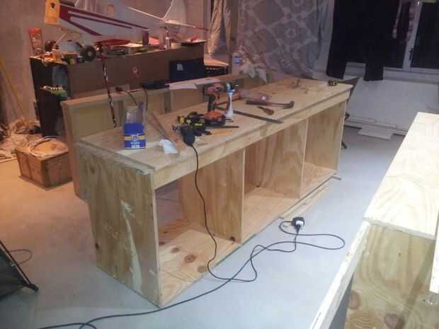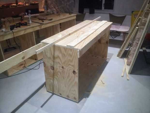 Lo último que necesitaba hacer era probarlo, para eso cortar madera contrachapada de 18 m m 600mm de ancho para hacer mis armarios de garaje.