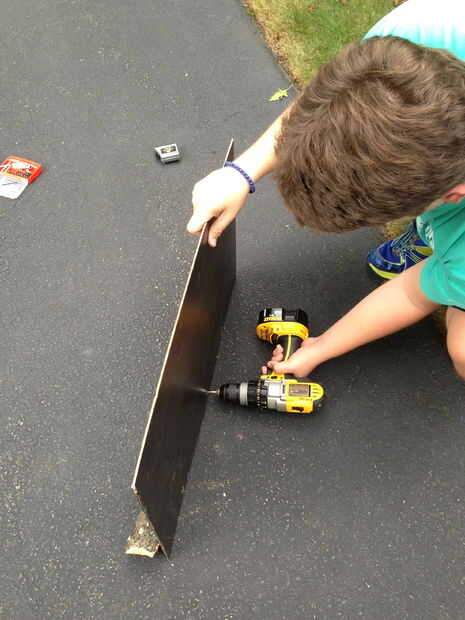 Después de taladrar el tornillo central y la Junta de carne a lo largo de la rama, añadir los dos tornillos a cada lado del tornillo central. Asegúrese de que son unos 5-7", asegurándose de que la pizarra y rama son seguras.